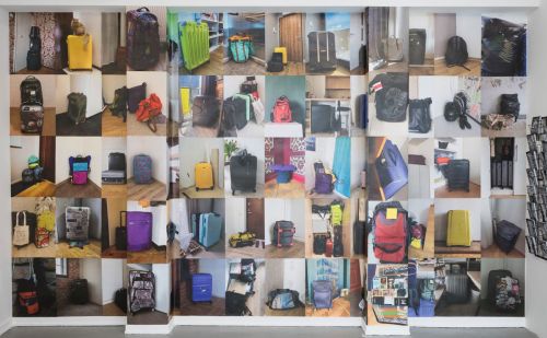 Für viele, die plötzlich ihr Land verlassen müssen, wird der Koffer zu einem Symbol: So versucht die belarusische Künstlerin Nadya Sayapina in der Video-Performance „My suitcase stands in the corner“ (2022), sich selbst in einen Koffer zu packen.[3] Und für „We didn’t plan to leave“ hat sie 72 Fotos zusammengestellt mit Koffern und Taschen von Belarus*innen und Ukrainer*innen, die vor Krieg und politischer Verfolgung fliehen mussten.