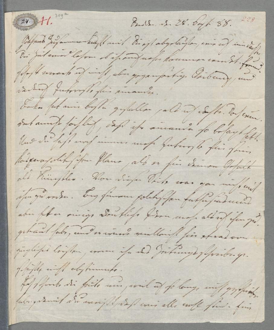Körners Brief vom 28. September 1788 (BSB-Hss Autogr.Cim. Körner, Christian Gottfried).