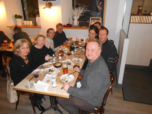 Zweite Eindrücke: Meine Reiselektüre ist – rein zufällig – Marlen Haushofers Die Wand. Erst denke ich: Dystopien hier wie dort, im Buch und, sobald ich das Hotelzimmer verlasse, befinde ich mich inmitten einer weiteren. Aber so einfach ist es nicht; beim ersten ausführlicheren Spaziergang – sofern man einen bei Eisregen und Nordostwind unternommenen anderthalbstündigen Fußmarsch auf verschneiten und abenteuerlich glatten Untergrund so nennen kann – zeigt sich die Stadt anders. Die Häuser niedriger, die Straßen überquerbar, immer wieder festlich herausgeputzte Kirchen und Kirchlein, ein Markt, Fußgänger, die weder rempeln noch, bei Nachfragen, mit den Achseln zucken. Nur in die Irre schicken die hilfreichen Auskunftgeber uns, aus Übereifer, aus einem plötzlich erwachten Wunsch heraus, den Ort, den wir suchen, im eigenen Redestrom selbst zu finden. Immerhin sind wir bei unserer Ankunft im georgischen Restaurant hungrig und sehen mit den kleinen gefrorenen Eiszäpfchen an Augenbrauen und Haarsträhnen angemessen vorweihnachtlich aus.