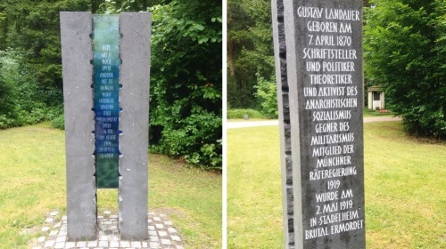 Dieses Zitat aus Gustav Landauers programmatischem Hauptwerk Aufbruch zum Sozialismus (1911) steht auf dem neuen, von der Landeshauptstadt München in Auftrag gegebenen und am 29. Juni 2017 im Waldfriedhof enthüllten Denkmal für diesen bedeutenden Kulturphilosophen und Publizisten. Landauer spielte in München in der kurzen Zeit der ersten Räterepublik vom 7. bis 13. April 1919 eine führende Rolle, wurde im Zuge der gewaltsamen Niederschlagung dieses politischen Experiments verhaftet und am 2. Mai 1919 im Gefängnis in Stadelheim auf brutalste Weise ermordet.