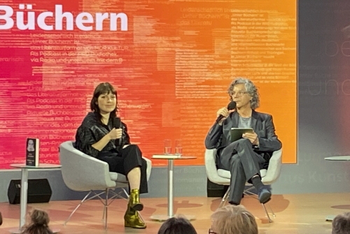 Die Wege der Literaturvermittlung ändern sich gerade massiv. Viele etablierte Formate wie das bekannte „Blaue Sofa“ gibt es nicht mehr. Bloggerinnen gewinnen massiv an Bedeutung gegenüber der rarer werdenden klassischen Buchkritik. Der Auftritt von Dana von Suffrin findet noch den großen Rahmen einer Fernsehsendung. Prominent im Eingangsbereich der Messe – der so genannten Glashalle – ist die öffentlich-rechtliche Bühne aufgebaut.