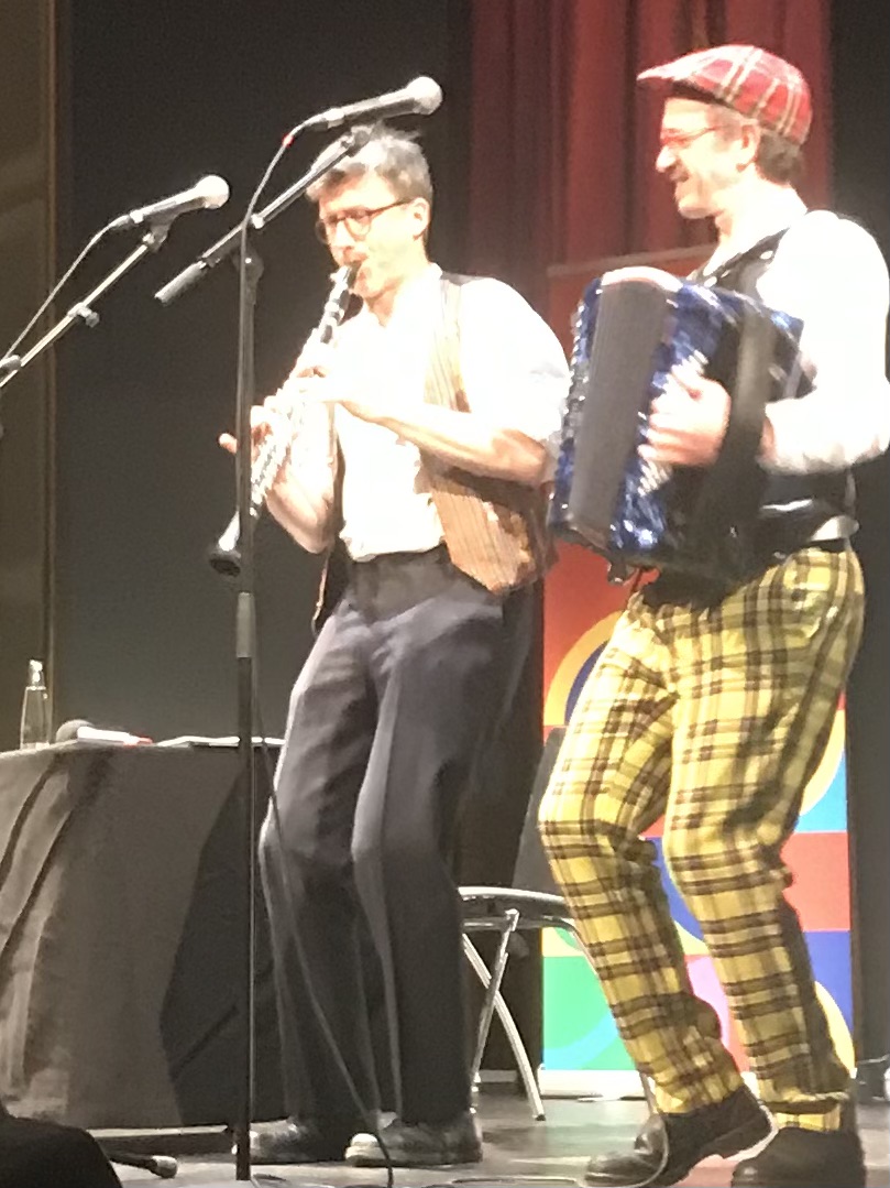 David Saam, der höchst unterhaltsam, locker und gut gestimmt den Bunten Abend nicht nur moderierte, sondern am Akkordeon und mit Gesang die Veranstaltung auch musikalisch rahmte; zusammen mit seinem Musik-Partner, dem Klarinettisten und Dudelsackspieler Res Richter von
