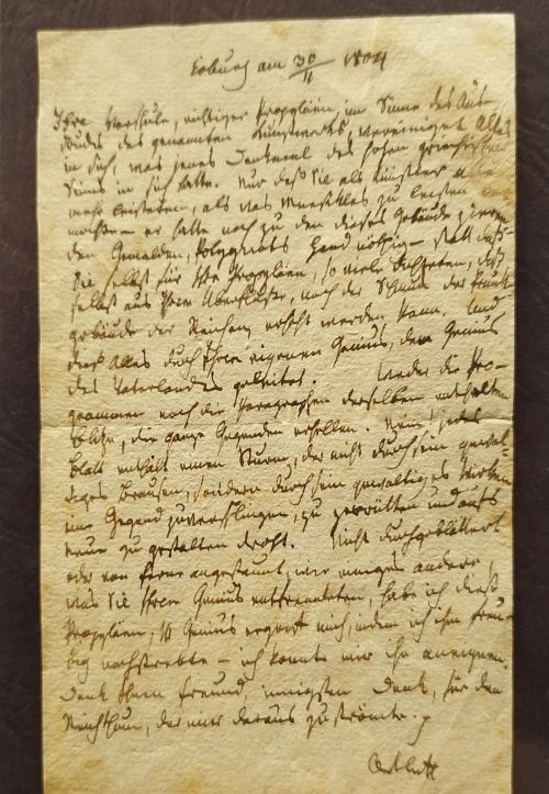 Erst 2023 tauchten 5 Briefe von und an Jean Paul aus Privatbesitz auf, hier: Johann A. Ortloff an Jean Paul, Coburg, 30. November 1804 © Landesbibliothek Coburg