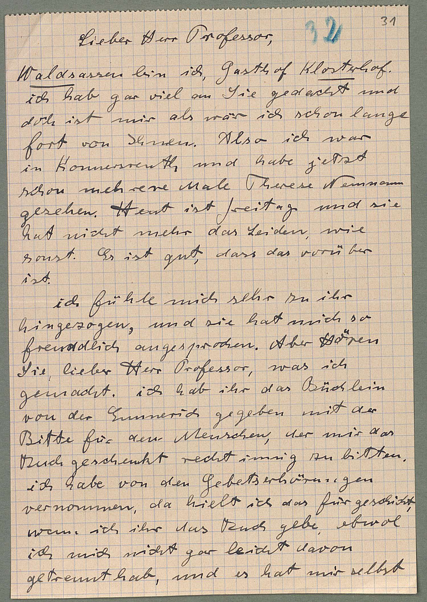Eigenhändiger Brief, [Waldsassen] [3.6.1927], 20,5 x 14 cm; Ana 390.II.A. Hennings, Emmy, Nr. 31