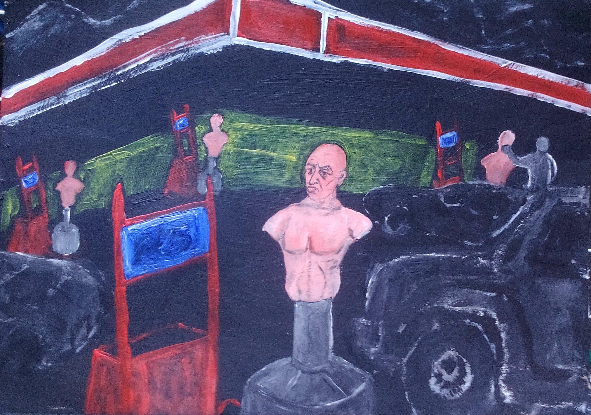 (Diese Texte wurden 2019 bei der Vernissage der Ausstellung „Prosa Engine” in Feldafing vorgelesen, wo unter anderem diese Bilder zu sehen waren.)