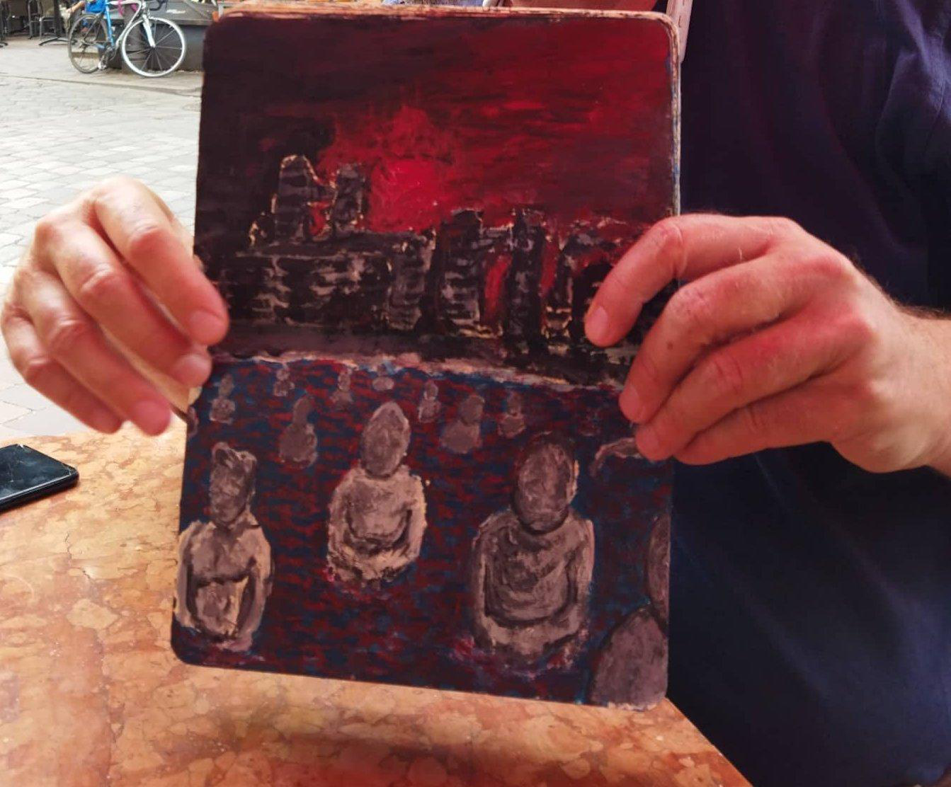 Als ich 2018 aus Mariupol nach München zurückkehrte, malte ich mehrere Bilder, nicht in Moleskine-Notizbüchern, sondern auf einzelnen Blättern.