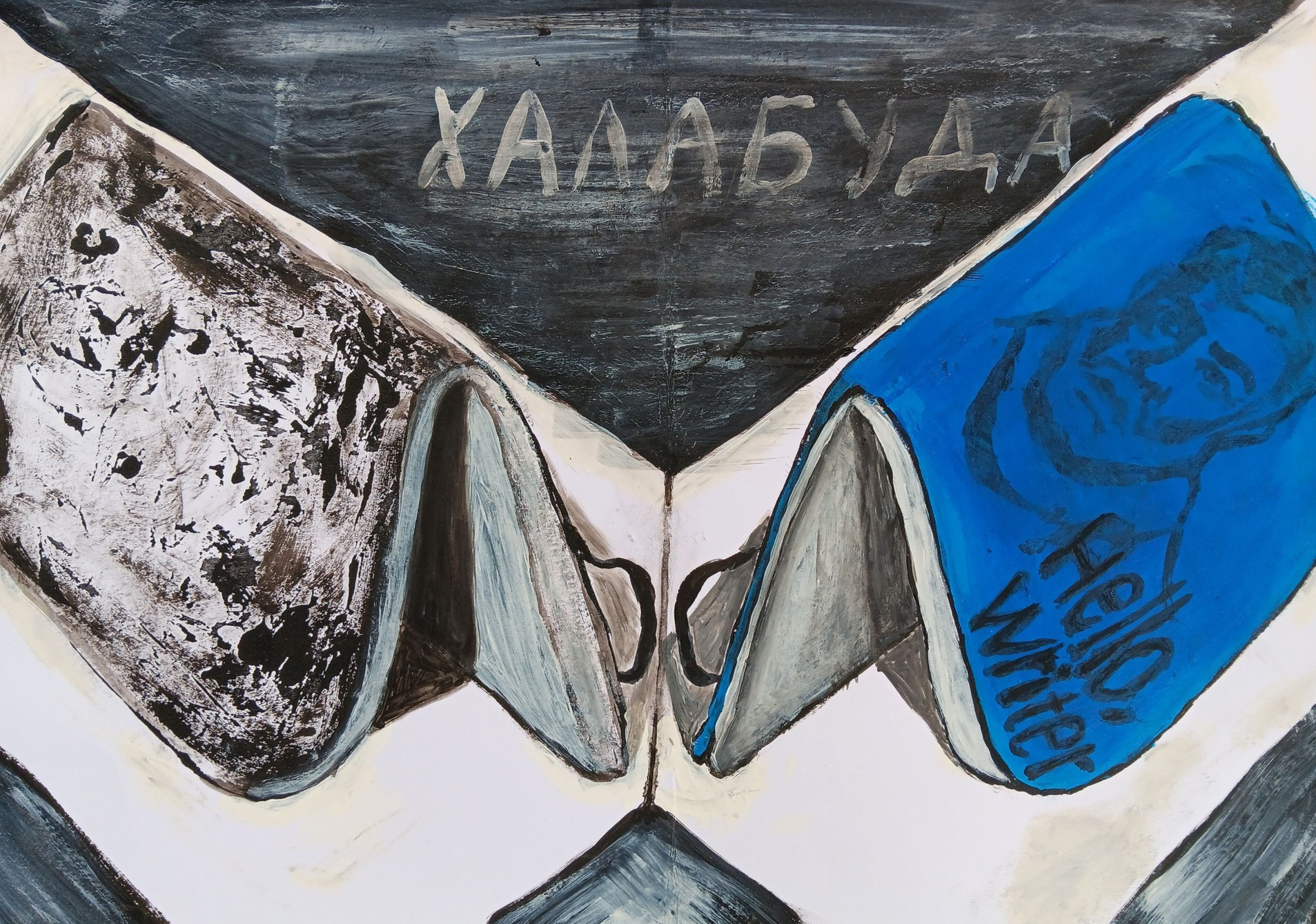 2025. Ich habe zwei Moleskine-Notizbücher aus Mariupol, ein grünes und ein blaues. Auf dem Cover des einen grüßt Hemingway, auf dem des anderen Jules Verne. Beide Skizzenbücher wurden von der Firma „Halabuda“ hergestellt, auf der Rückseite des Einbands steht in kleiner Schrift die Adresse: Mariupol, Architekt-Nielsen-Straße 60. Der Eigentümer der Firma, Dmitro Tschhitschera, war nicht nur Geschäftsmann, sondern vielmehr Fotograf. „Halabuda“ bedeutet auf Ukrainisch Hütte, Baracke, Laube, baufälliges Häuschen. Dmitro Tschitschera verschwand nach einem Bombenangriff spurlos.