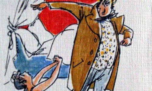 Die farbigen Illustrationen finden sich in der Anthologie Entlarvung der Weiber, die im Südwest-Verlag erschien und von Hanns Erich Köhler illustriert wurde (der übrigens 1983 in Herrsching am Ammersee starb). Die schwarzweiße, aber feingliedrige Zeichnung der Frau mit dem sphärischen Busen verdanken wir Gerhard Ulrich, der sie für die Jean Paul-Anthologie Lauf der Welt herstellte, die Mitte der 60er Jahre in Bertelsmanns Lesering herauskam.