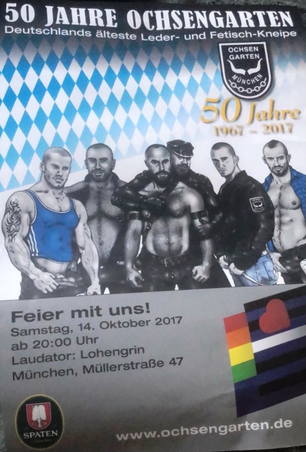 Den Münchner Ochsengarten muss man sich als Mini-Mineshaft vorstellen, mit Hinterzimmer samt Badewanne im Dunkelraum, einer der ersten Darkrooms in Deutschland. Ochsengarten klingt auch wohliger als Mineshaft, ist übersichtlich und vertraulich und bietet im Grunde dasselbe in Klein inklusive erhöhter Anonymität auch dank Sprachbarriere. Hans Pleschinski schreibt in seinem Roman Bildnis eines Unsichtbaren: „Der Ochsengarten war eines der aufregendsten Lokale Europas. Francis Bacon, Michel Foucault, Leonard Bernstein, Freddie Mercury, alle tranken sie ihr Bier und waren auf Menschenfang, oder wollten sich fangen lassen“. Der Ochsengarten hat alle sozialen und politischen Veränderungen der vergangenen Jahrzehnte überlebt und ist heute weiterhin und fast im Originalzustand geöffnet – Zutritt nur für Herren.