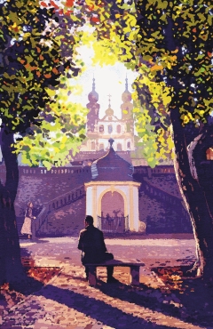 Die Bahn nicht als Quelle des Frustes, sondern als Gelegenheitsamor, der zwei Arbeitstiere in Freigeister verwandelt, die über den Bruch ihres durchgetakteten Alltags nicht fluchen, sondern es genießen, ein paar Tage lang wie die Katzen in der Oktobersonne planlos durch die (herrliche) fränkische Gegend zu schweifen. Darauf muss man erst einmal kommen. In unserer immer gereizteren Gegenwart finde ich es ausgesprochen charmant. Überdies kann Ewald Arenz auch mit Worten gut malen:
