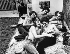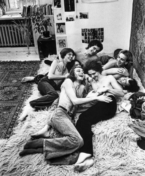 Die Anordnung von zwei oder drei zusammengehörigen Einzel- oder Gruppenporträts zeigt eine Generation, die mit den damaligen Konventionen bricht und eine eigene Gegenkultur entwickelt. Die fotografierten Frauen, Männer und Kinder tragen Schlaghosen, lange Mäntel, Gürtel, Hüte und viele andere auffällige Accessoires. Sie umarmen und küssen sich, lachen und rauchen. Mal schauen sie selbstbewusst in die Kamera, ein anderes Mal schweift ihr Blick verträumt in die Ferne. In immer wieder anderen Konstellationen wurden die Blumenkinder von Moses fotografiert, und man stellt sich als Besucher beinahe zwangsläufig die Frage, wer diese Menschen sind und wie sie zueinander stehen.
