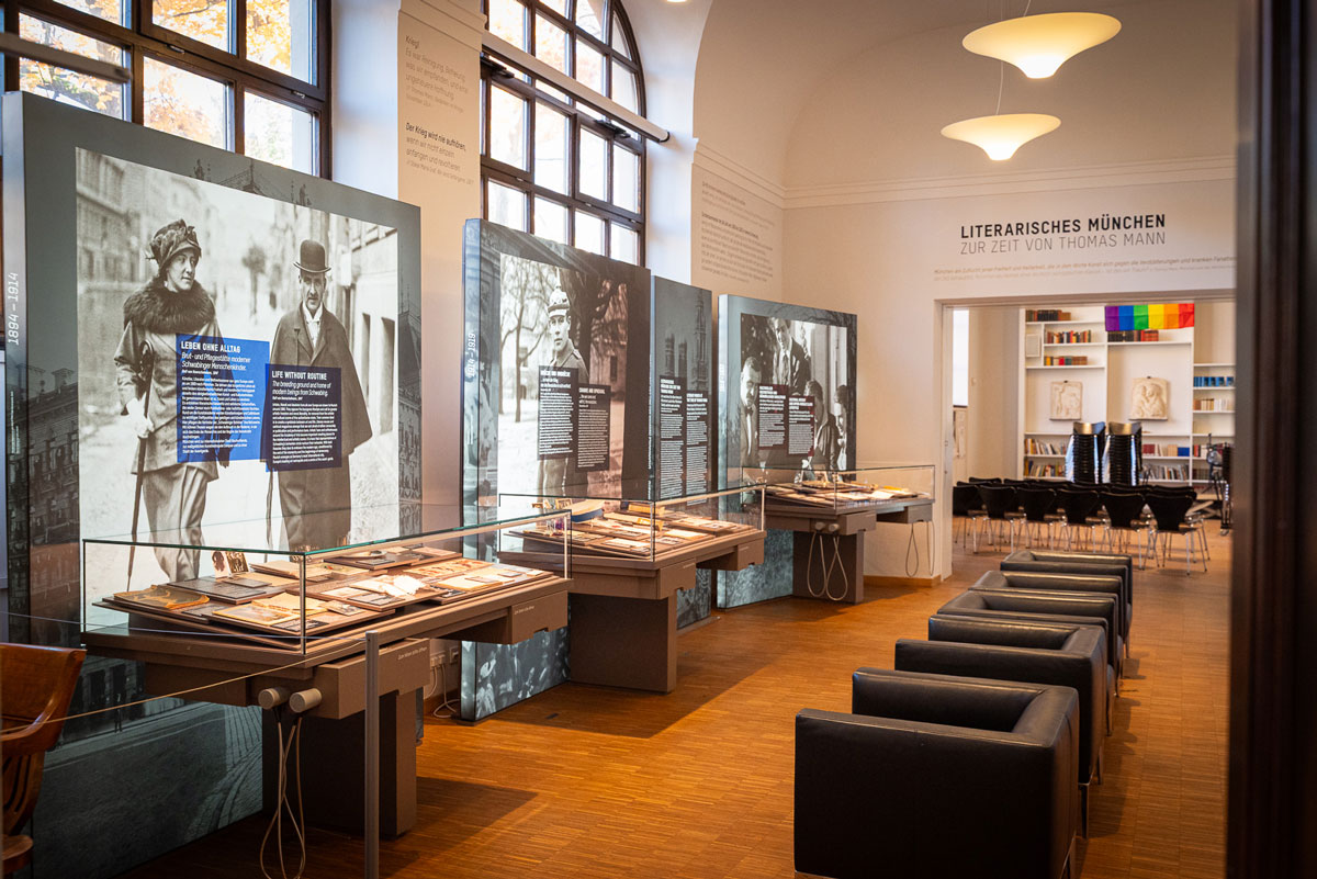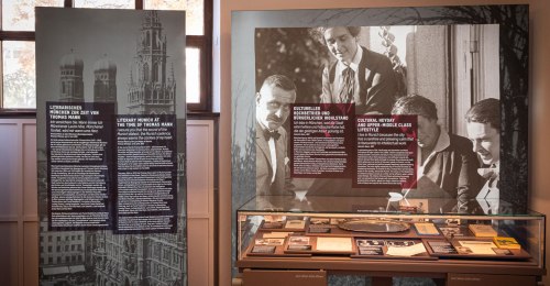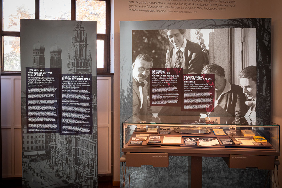 Der Besuch der Ausstellung zum literarischen München Thomas Manns lohnt sich – und zwar häufiger als nur ein Mal. Es gibt viel zu entdecken, und die erzählte(n) Geschichte(n) sind vielfältig. Die von Elisabeth Tworek kuratierte Dauerausstellung wurde 2016 in den damals neu gestalteten und sanierten Räumen der Monacensia eröffnet. Sie bildet knapp fünfzig Jahre Literaturgeschichte ab, von der Bohème bis zum Ende des Zweiten Weltkriegs.