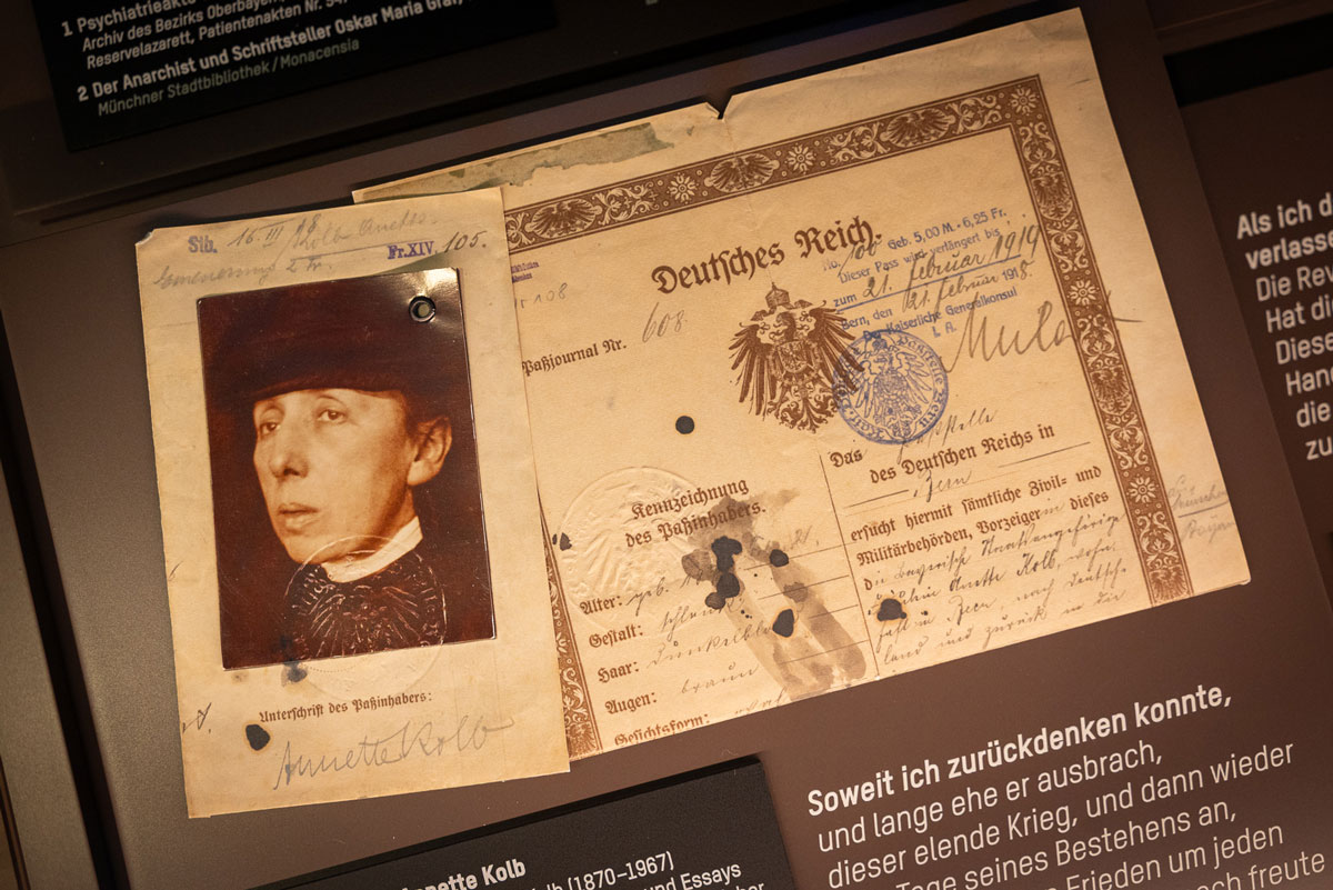 Bayerische Schriftsteller*innen aus dem Volk wie Lena Christ und Oskar Maria Graf erleben den Krieg aus anderen Perspektiven. Lena Christ ist in schwierigen Verhältnissen aufgewachsen und hat sich stets gegen die Widrigkeiten des Lebens zu stemmen versucht. Ein Rubinglas soll sie daran erinnern: „Sei glücklich“. Auch sie wird ausgezeichnet, allerdings für ihren Erzählband über den Ersten Weltkrieg Unsere Bayern anno 14. Oskar Maria Graf wird zum Militär eingezogen, aufgrund „psychischer Probleme“ aber in eine Anstalt gebracht.