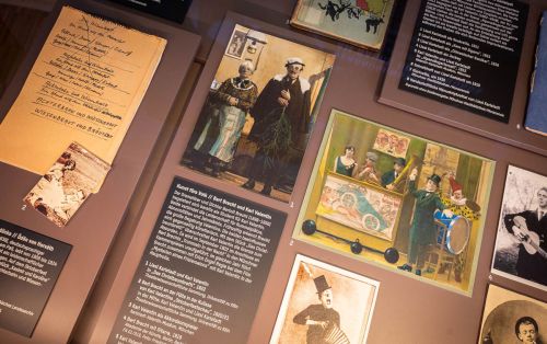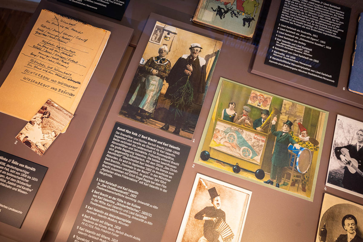 Zusammen mit seiner Partnerin Liesl Karlstadt erobert er die Jahrmärkte und Brettlbühnen in München sowie weit darüber hinaus in Deutschland und ganz Europa. Das zeigen Bilder und ein Programm aus dem „Kabarett der Komiker“ von 1929 in Berlin. Das Volksvergnügen entdecken auch junge Autor*innen wie Bertolt Brecht, der das Duo Valentin/Karlstadt bei Auftritten unter anderem musikalisch begleitet, oder Ödön von Horváth. Beide orientieren sich an der Tradition der Münchner Volkssänger*innnen und reformieren so das Theater.