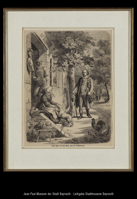 Bayreuth - damals noch »Baireuth« - ist Johann Paul Friedrich Richter schon seit Kindheitstagen ein Begriff, da sein Vater wiederholt Ausgaben der BAIREUTHER ZEITUNG für seinen lesehungrigen Sohn mitbringt. Erstmals mit eigenen Augen sieht der junge Richter die Stadt im Jahr 1781, als er zur Zulassungsprüfung fürs Studium dorthin reitet. Die Anreise per Pferd ist für angehende Studenten Pflicht. Glaubt man den Legenden und einer Szene in dem Roman FLEGELJAHRE (1805, Leseprobe), hat sie im Fall Richter jedoch weder dem Gaul noch dem Reiter behagt.