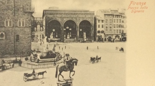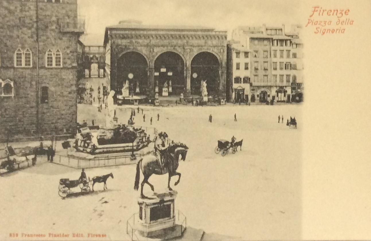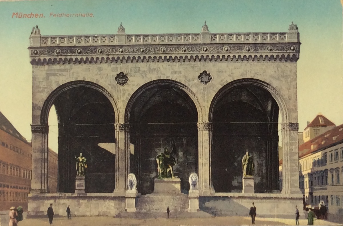 Im siebten Absatz der Novelle springt Thomas Mann aus der Maxvorstadt oder Schwabing, wo die „kleinen“ Antiquitätenhandlungen befinden, „dort oben“ zum Odeonsplatz, wo „angesichts der gewaltigen Loggia, vor der sich die geräumige Mosaikfläche ausbreitet, und schräg gegenüber dem Palast des Regenten, […] sich die Leute um die breiten Fenster und Schaukästen des großen Kunstmagazins“ drängen. Die „Loggia“ ist bekanntlich die dreibogige, klassizistische „Feldherrnhalle“, die 1841-1844 nach Plänen von Friedrich von Gärtner als Denkmal an die bayerische Armee errichtet wurde (Abb. 28), Vorbild dafür war die zwischen 1376 und 1382 von Benci di Cione und Simone Talenti an der Piazza della Signoria in Florenz erbaute „Loggia dei Lanzi“, auch als „Loggia del’Orcagna“ nach dem vermuteten Erbauer genannt (Abb. 29).