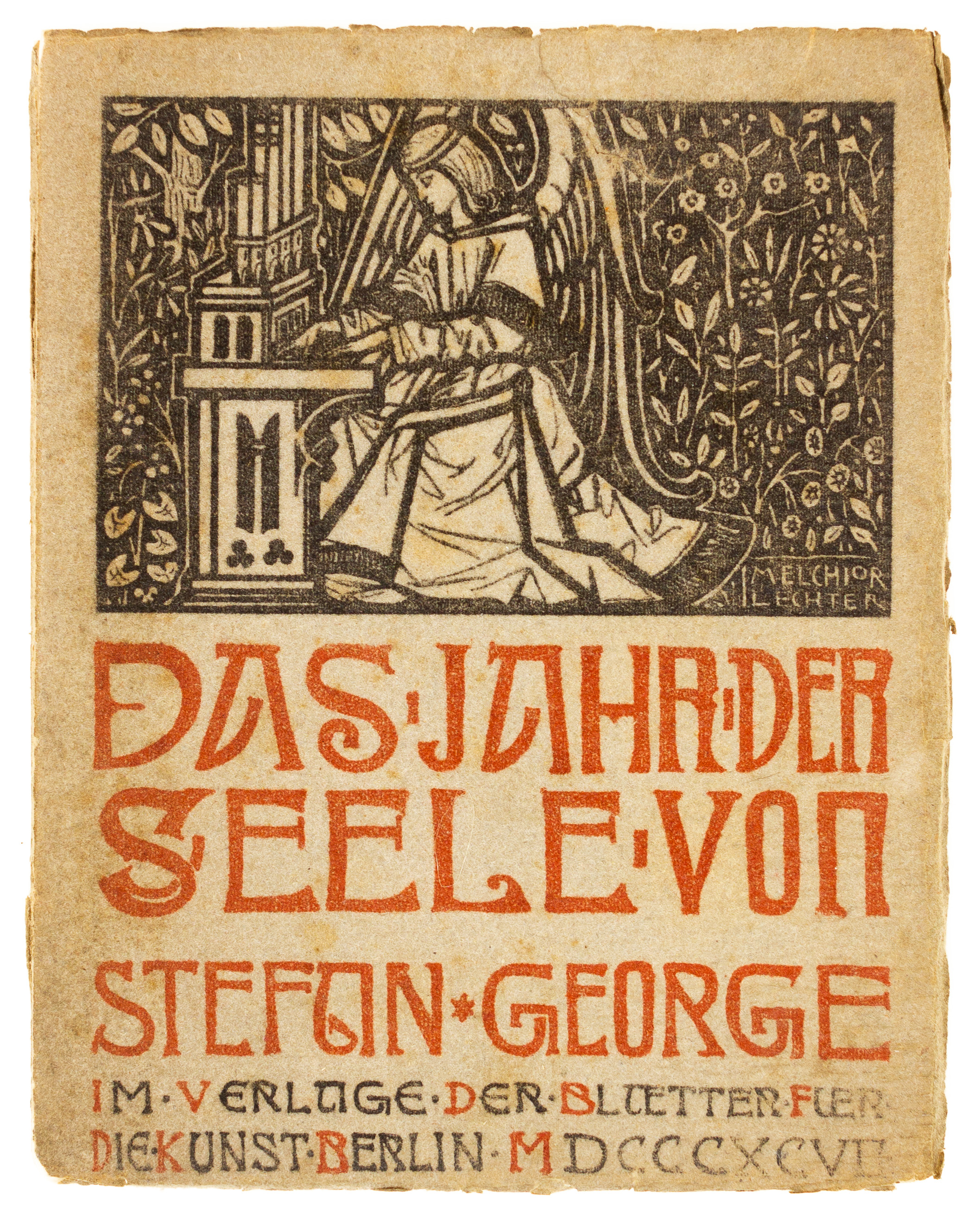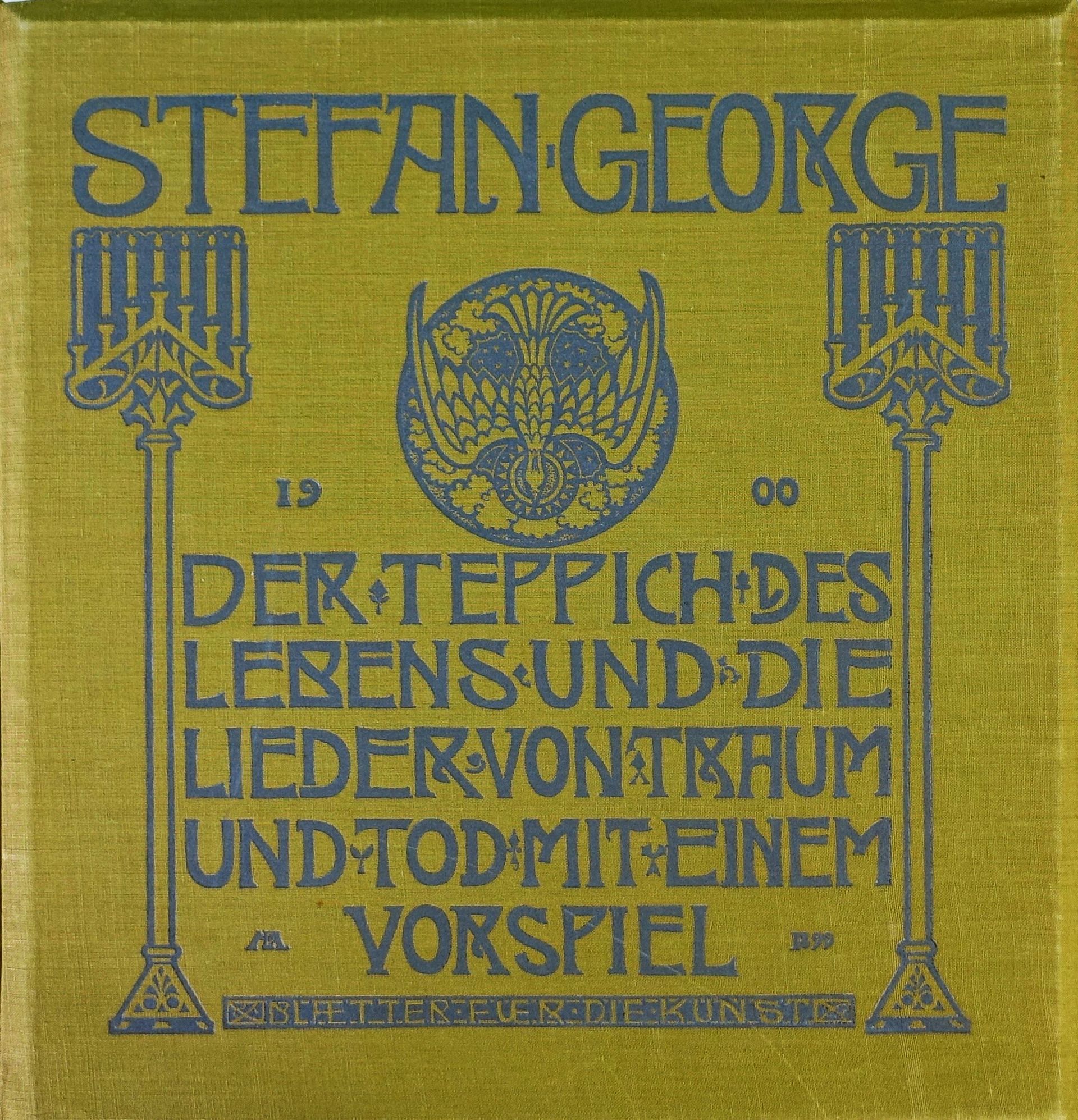 Thomas Manns begeisterte Beschreibung der Auslage von M. Blüthenzweig erfasst auch das literarische Geschehen des Tages: „Prachtbände, Triumphe der neuen Ausstattungskunst, Werke moderner Lyriker, gehüllt in einem dekorativen und vornehmen Prunk“ erregen seine Aufmerksamkeit, sensibilisiert ohne Zweifel durch ein Werk seines Lübecker Schulfreundes Otto Grautoff, das heute noch lesenswerte Buch „Die Entwicklung der modernen Buchkunst in Deutschland“, das 1901 beim Verlag Hermann Seemann Nachfolger in Leipzig erschienen war. Grautoff widmet dem Illustrator Melchior Lechter einige Seiten und bildet die Titelblätter zu Stefan Georges Gedichtbänden Das Jahr der Seele, 1897, und Der Teppich des Lebens und Die Lieder von Traum und Tod, 1899, beide Verlag Die Blätter für die Kunst, Berlin ab [18], und es ist denkbar, dass Thomas Mann diese beiden Bände in der Auslage gesehen hat (Abb. 40 u. 41); immerhin hat der Schriftsteller Karl Wolfskehl am 11. Dezember 1899 an Stefan George geschrieben, dass in der Münchener Kunsthandlung Littauer am Odeonsplatz „ein Exemplar von Teppich des Lebens alles überstrahlend im Schaufenster prangt“ [19].