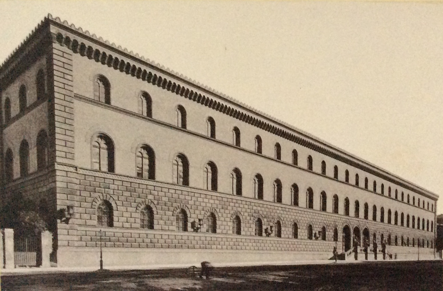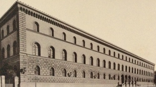 [32] Hederer, op. zit.; Klenzes Herzog-Max-Palais auf der rechten Seite, von Norden kommend, 1937 von den Nationalsozialsten für eine Straßenerweiterung abgebrochen, basiert auf dem Palazzo della Cancelleria in Rom, 1485-1513 erbaut, z.T. nach Plänen von Leon Battista Alberti.