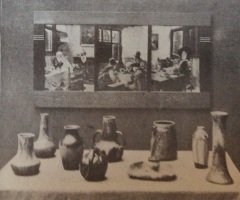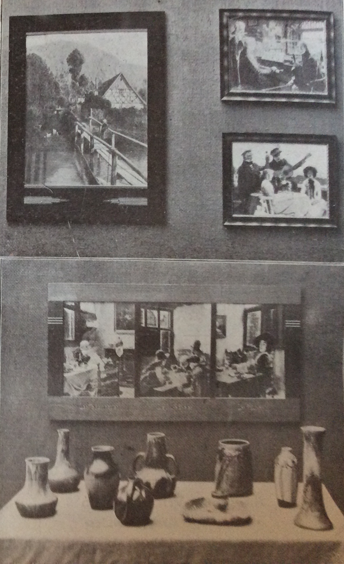Cohens Angebot gleicht dem Warenbestand von J. Littauer und M. Blüthenzweig auf das Haar, so sehr sogar, dass man sich wundern muss, nie etwas hinsichtlich dieser Menge an Reproduktionen und Kopien über den Niedergang von Bonn als Kunststadt um 1900 gelesen zu haben. Das Angebot der Kunstsalons um diese Zeit, wo auch immer in Deutschland, wird sich aus kaum vermeidbaren Gründen der Geschäftsrichtung nur wenig untereinander unterschieden haben, Blüthenzweig bildet keine Ausnahme. Glücklicherweise enthält das Werbeheft von Cohen Fotografien des Geschäftsinterieurs. Und siehe da: In der „Vorhalle“ der Kunsthandlung ist eine Florentinische Quattrocento-Büste auf einem Vertiko im Hintergrund zu erkennen, auf einem Aufsatzschrank sind moderne Keramiken, Metallarbeiten und Porzellane zu sehen (Abb. 66). Die Abbildung „Aus meinen Verkaufsräumen – Keramiken“ zeigt moderne Gefäße, die u. a. als Arbeiten von Richard Mutz, Altona und Max Laeuger, Kandern identifiziert werden können [58] (Abb. 67).